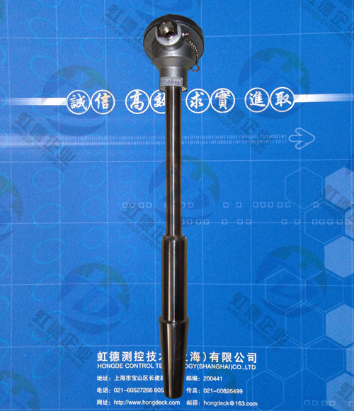 HD-WRNR-13熱套式熱電偶主要用于測(cè)量蒸汽管道及鍋爐的溫度。HD-WRNR-15熱電偶采用熱套式保護(hù)管,與電偶芯可快速分離的方式,使用時(shí),用戶可將熱套焊接或螺紋固定在主設(shè)備上,然后,將熱電偶旋入就可工作。HD-WRNR-14熱套式熱電偶根據(jù)所使用的工作壓力、溫度和流速的不同,具有幾種相應(yīng)的結(jié)構(gòu)和安裝形式,用戶可根據(jù)使用情況來自由選擇。同時(shí),該產(chǎn)品裝上變送器后,不僅能節(jié)省了補(bǔ)償導(dǎo)線,而且溫度變送器輸出4~20mA的標(biāo)準(zhǔn)信號(hào),增強(qiáng)了抗干擾能力。