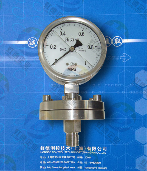 HD-YBFZ-100ML隔膜壓力表為使通用型壓力表能適用于測量強(qiáng)腐蝕、高溫、高粘度、易結(jié)晶、易凝固、有固體浮游物的介質(zhì)壓力以及必須避免測量介質(zhì)直接進(jìn)入通用型壓力儀表和防止沉淀物積聚且易清洗的場合,應(yīng)必須采用由隔膜隔離器與通用型壓力儀表組成一個系統(tǒng)的隔膜表?! ?br />