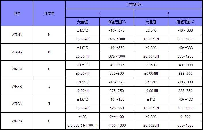 (2)熱電偶、熱電阻應作導通和絕緣檢查,并應進行常溫下mv、電阻測試,一般不再進行熱電性能試驗。如業(yè)主堅持對裝置中主要檢測點和有特殊要求的檢測點的熱電偶、熱電阻進行熱電性能試驗,原則上不超過總量的10%。熱電偶、熱電阻熱電特性的允許誤差分別見表1、表2。