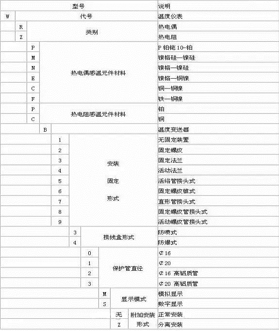 | 常用測溫點溫度儀表規(guī)格型號須知 | |