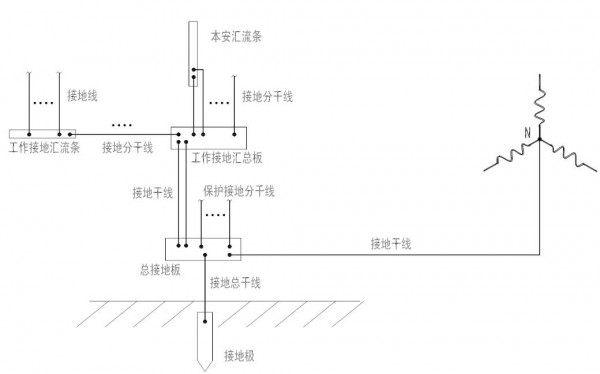 保護接地匯總板和總接地板合用的接地連接示意圖